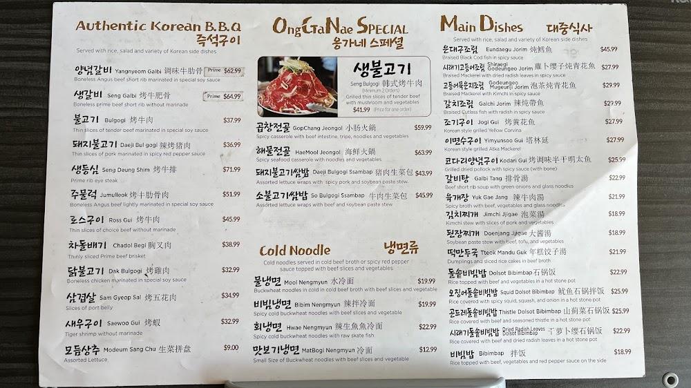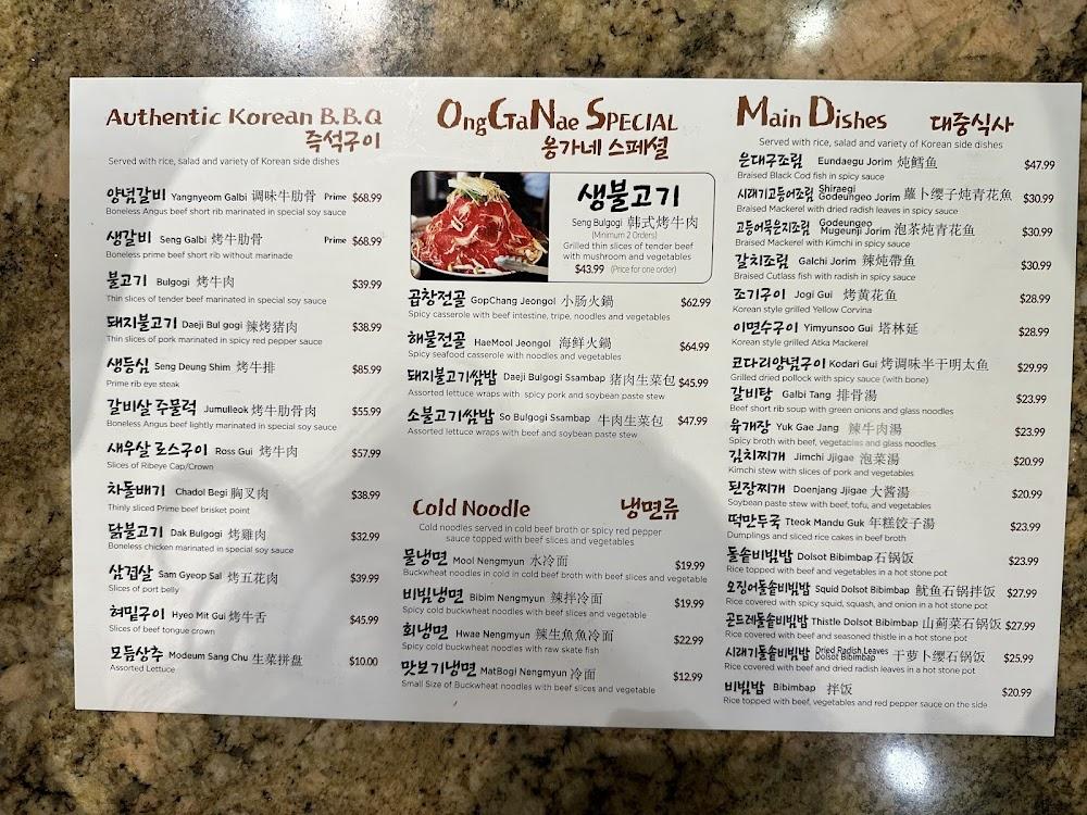 Onggane OGN Korean BBQ boasts a diverse menu with traditional favorites. The Seng Bulgogi is the standout, featuring freshly grilled beef slices, vegetables, and mushrooms. Other notable dishes include crispy seafood pancakes and rich hot stone bibimbap, which keep patrons returning.